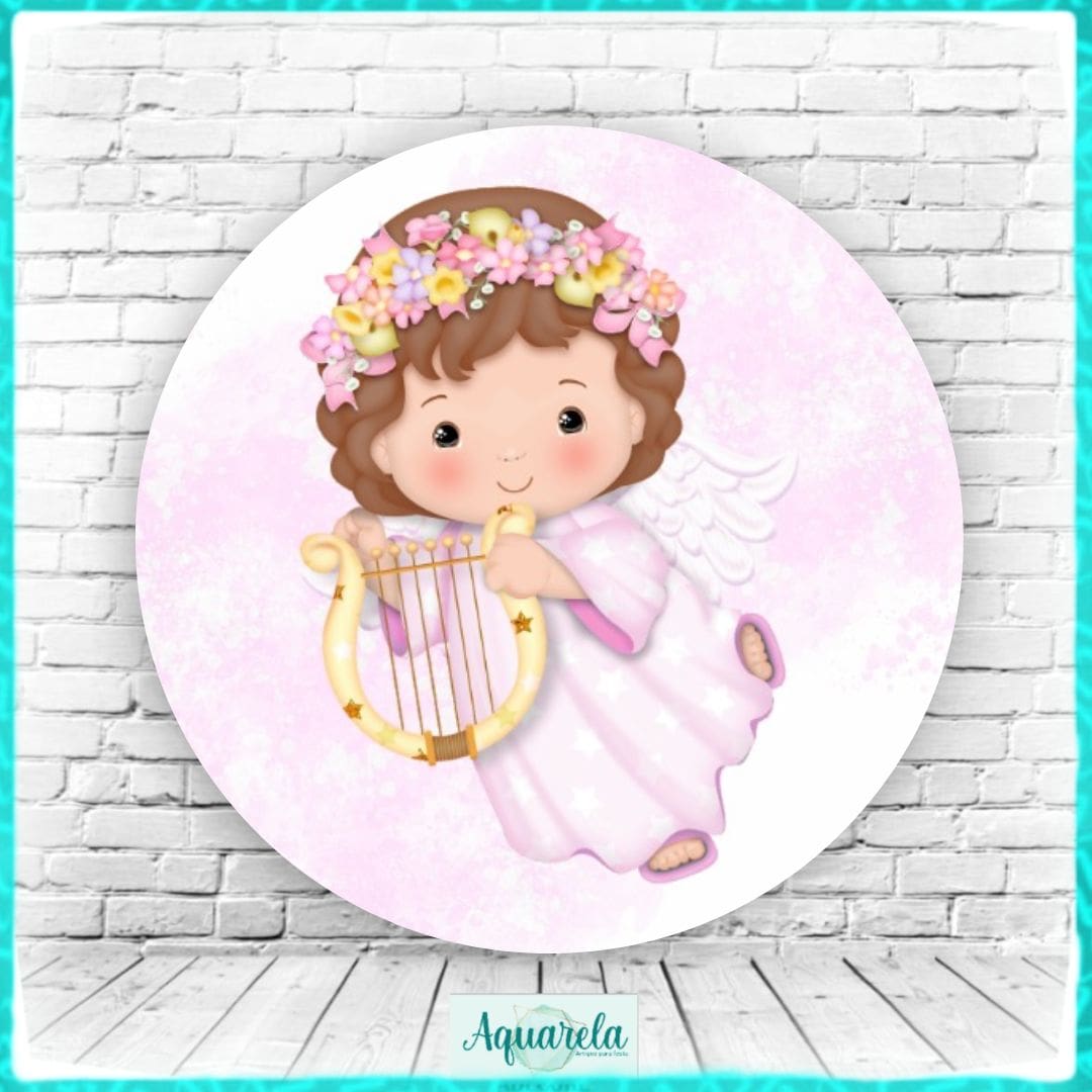 Painel Anjinha Menina Batizado 200 cm diametro