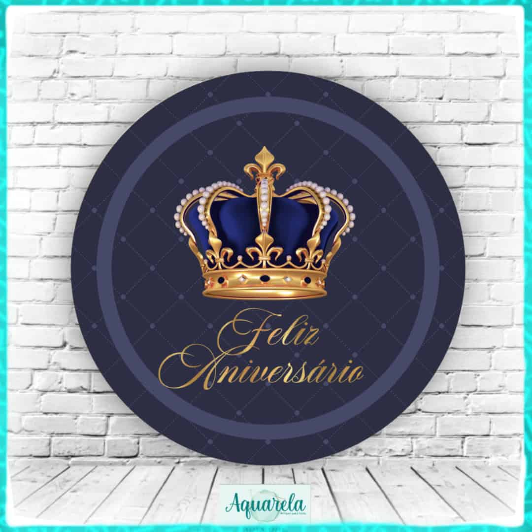 Painel Coroa Realeza Azul Dark Menino 150 cm diametro