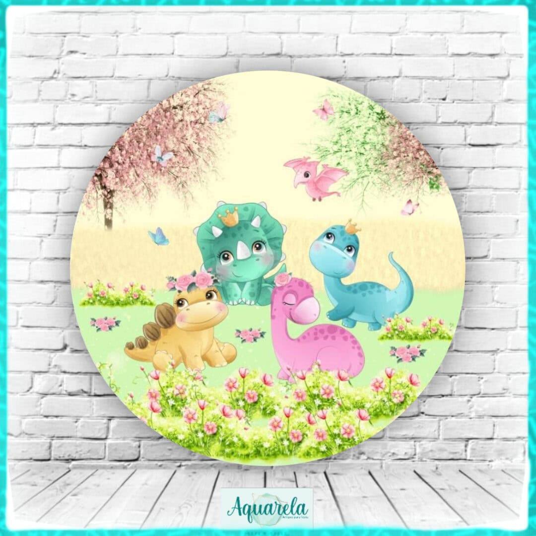 Painel Dinossauro Dino Baby Flores Menina 120 cm diametro
