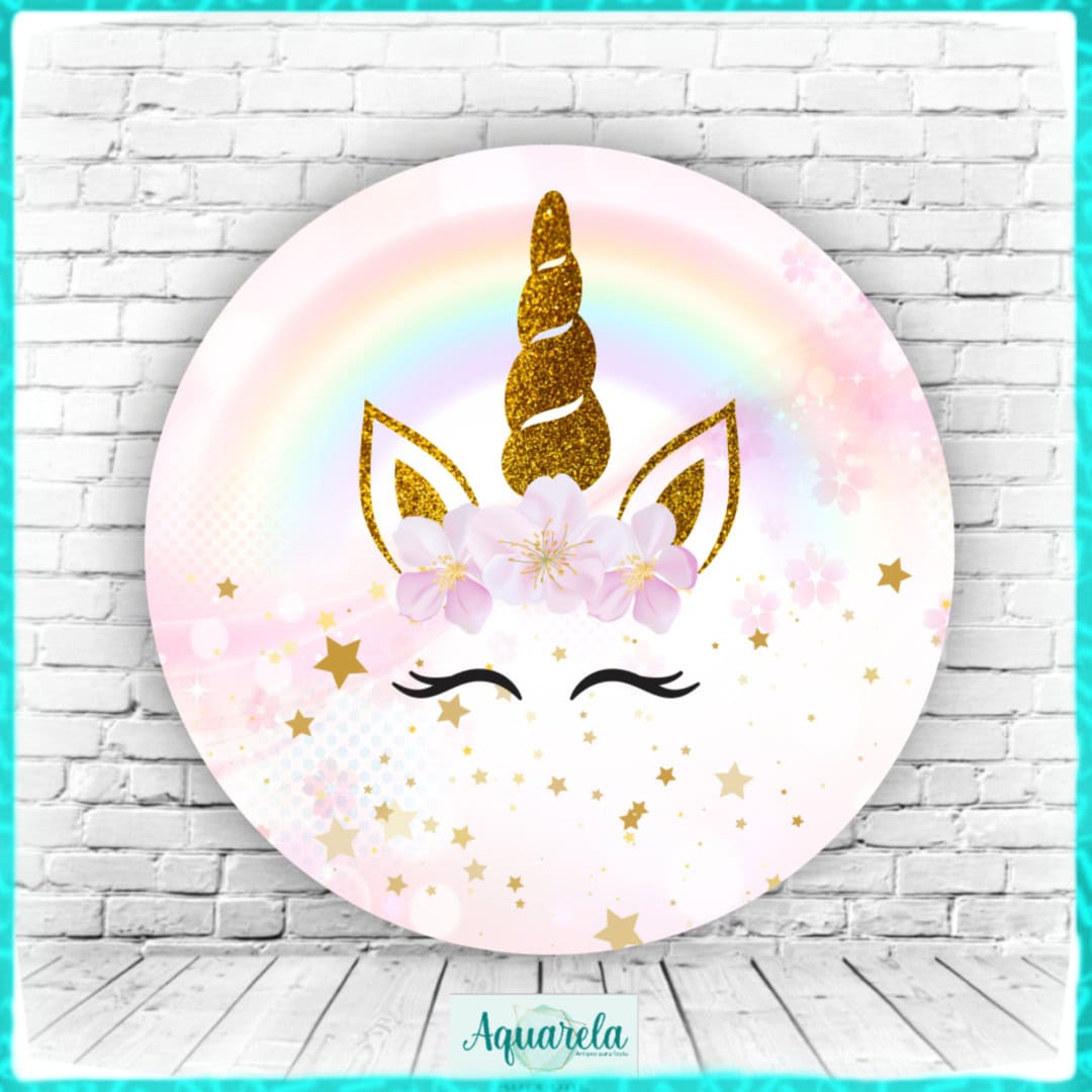 Painel Unicórnio Estrelas Glitter 200 cm diametro